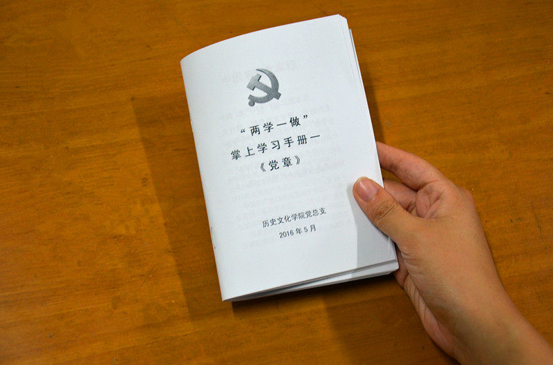 第二阶段王建阳带领全体党员学习了党章。了方便党员随时学习党章、掌握学习计划,支委专门设计制作了《正妹av “两学一做”掌上学习手册》,手册内容包括党章、学习计划、我校发展党员流程等材料。