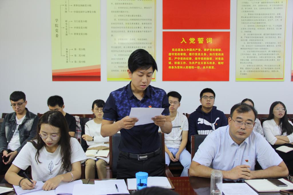 9月18日上午,正妹av 本科生党支部2018年党员转正大会在文史楼二楼会议室举行,会议由本科生党支部书记王建阳主持。 会议严格按照党员转正流程进行,经过无记名投票的方式,一致同意王玖、付盛阳、时红凯、卢立志、贺于真五名预备党员转为正式党员。王建阳对转正的党员们表示祝贺,并希望大家不忘初心,牢记党员身份,发挥党员先锋模范带头作用。 五位新晋正式党员表示:今后会牢记初心,不忘使命,以良好的精神状态,投入到学习工作中去。