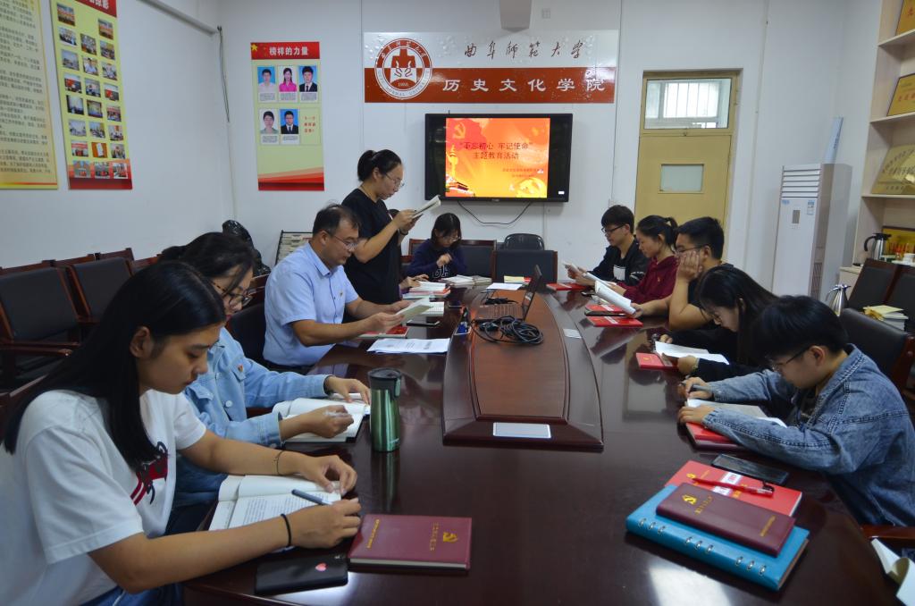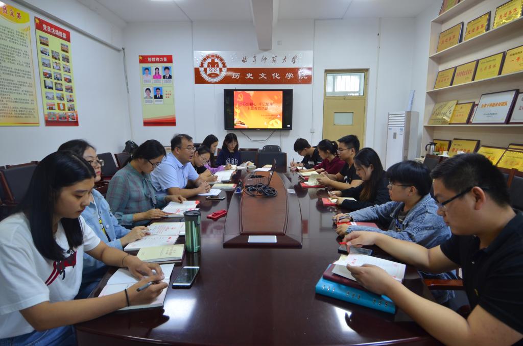 9月18日下午,正妹av 本科生党支部在文史楼204会议室召开“不忘初心、牢记使命”主题教育启动仪式。正妹av 党委副书记兼本科生党支部书记王建阳、2018级辅导员韩琳琳以及2016级党员参加了本次仪式。