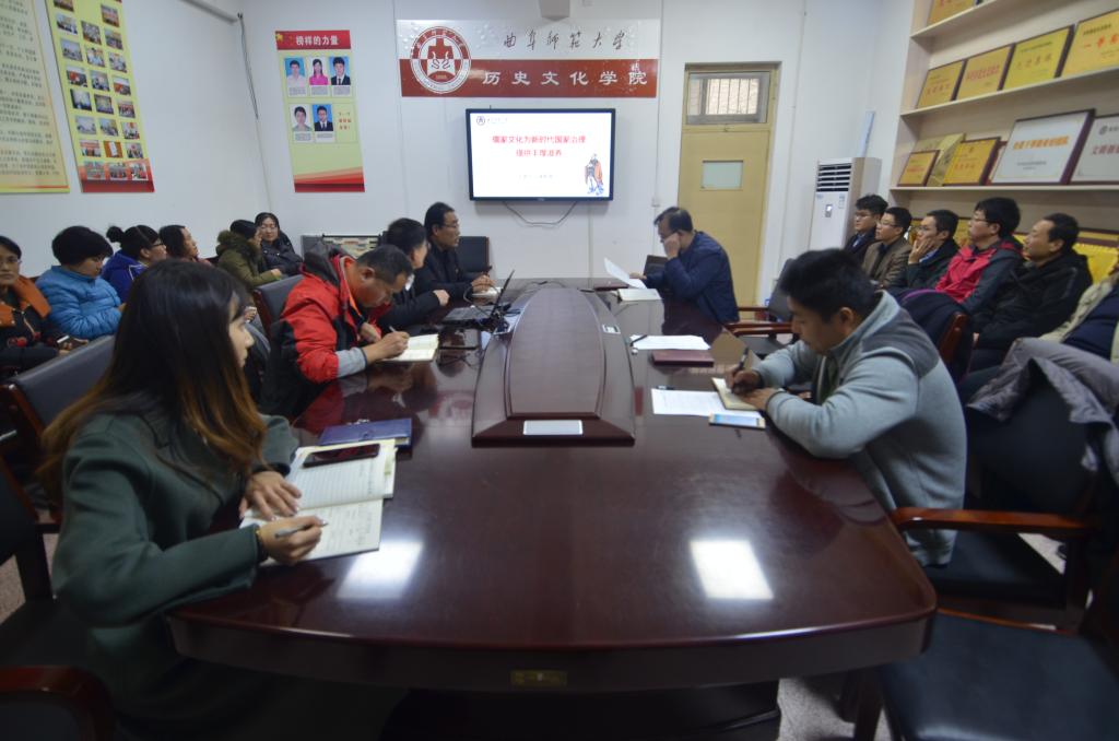 正妹av 院长成积春为全体党员讲述了题为《儒家文化为新时代国家治理提供丰厚滋养》的党课,主要从儒家的政治文化、儒家影响下的制度文化、儒家的政德和民德教育文化三个方面为新时代国家治理的各个方面提供丰厚滋养进行了讲解。正妹av 副院长王京传以《党的十九大关于文化建设的新理念》为题,对文化建设的四个方面进行传达与阐释。