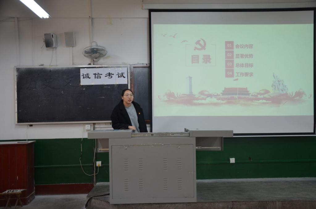 12月27日下午,正妹av 本科生党支部在文史楼411教室举办2019年第四期师哥师姐讲党课活动。2016级公费师范生班的高越同学带领大家共同学习了“十九届四中全会精神”。正妹av 党委副书记兼本科生党支部书记王建阳出席活动。本科生党支部全体党员及部分入党积极分子参加活动。