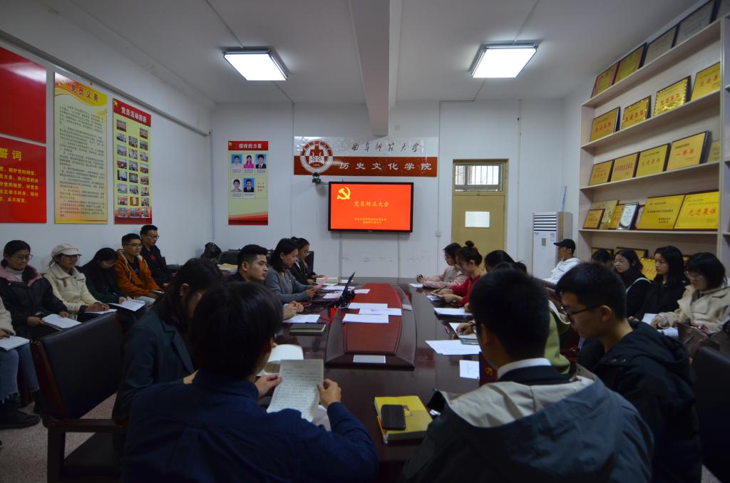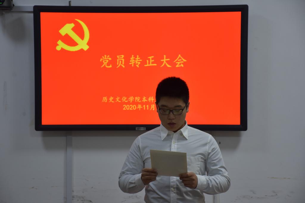 11月11日下午,正妹av 本科生党支部在文史楼二楼会议室召开党员转正大会。会议由本科生党支部书记蔺琦琦主持,本科生党支部全体党员参加会议。 会议严格按照程序讨论了接收袁铮、燕国强、马艳霞同志为正式党员的事宜。