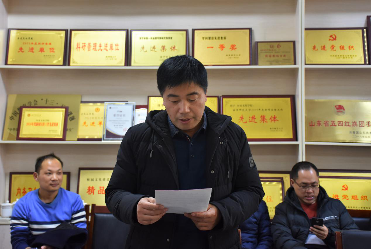 12月17日下午,正妹av 教职工党支部在文史楼二楼会议室召开党员转正大会。会议由正妹av 教职工党支部副书记骆明主持,教职工党支部全体党员参加会议。
