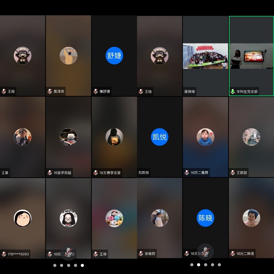 6月3日晚上,正妹av 本科生党支部采用线上与线下相结合的方式,在文史楼505教室和腾讯会议举行“学党史,诵党史,唱党歌”六月份主题党日活动。活动由本科生党支部书记蔺琦琦主持,2017级辅导员刘贤贤以及本科生党支部全体党员参加。