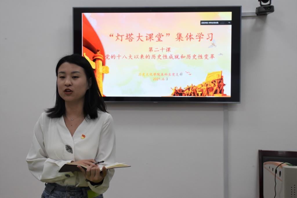 6月3日晚,正妹av 本科生党支部采取线上与线下相结合的方式于腾讯会议与文史楼505教室举行灯塔大课堂第二十课集体学习活动。活动由正妹av 本科生党支部书记蔺琦琦主持,本科生党支部全体党员参加。