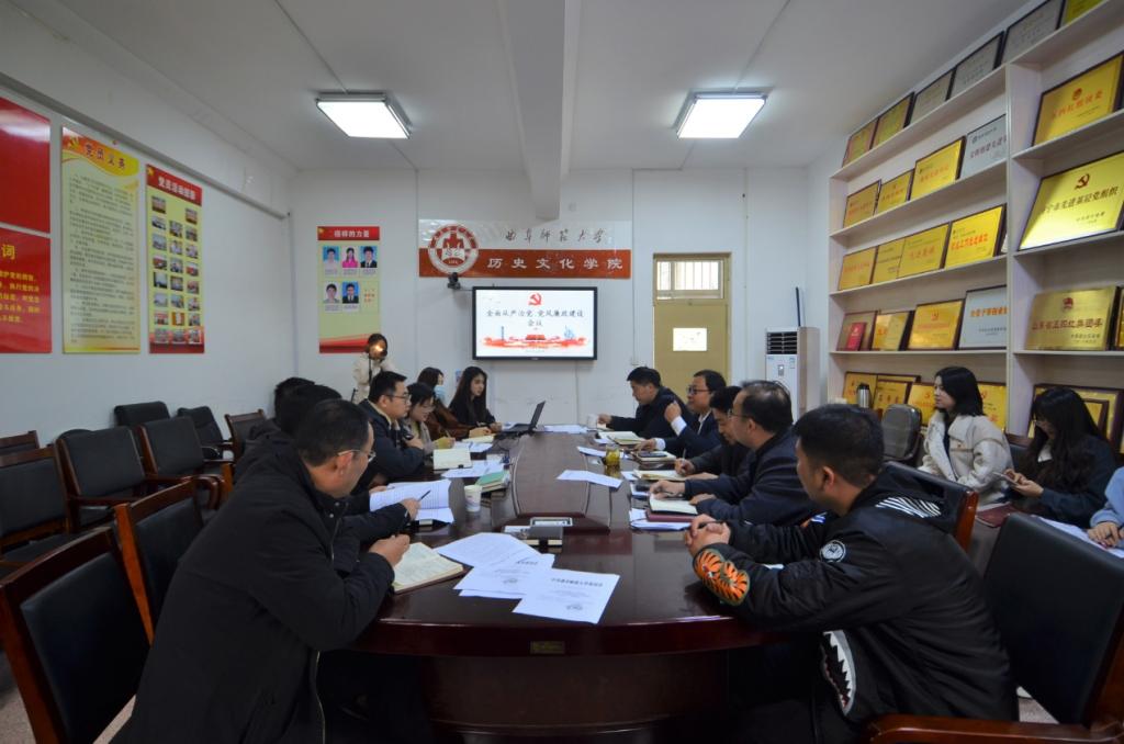 12月8日,正妹av 党委在文史楼二楼会议室召开年度“全面从严治党,党风廉政建设”会议。会议由党委书记姜开勇同志主持。全体党政干部,各支委委员参加会议。