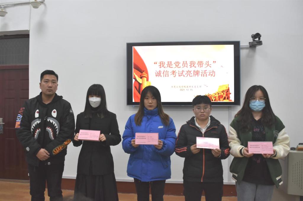 12月15日下午,正妹av 本科生党支部在文史楼505教室举办“我是党员我带头”诚信考试亮牌活动。活动由党支部副书记蔺琦琦同志主持,全体党员参加活动。