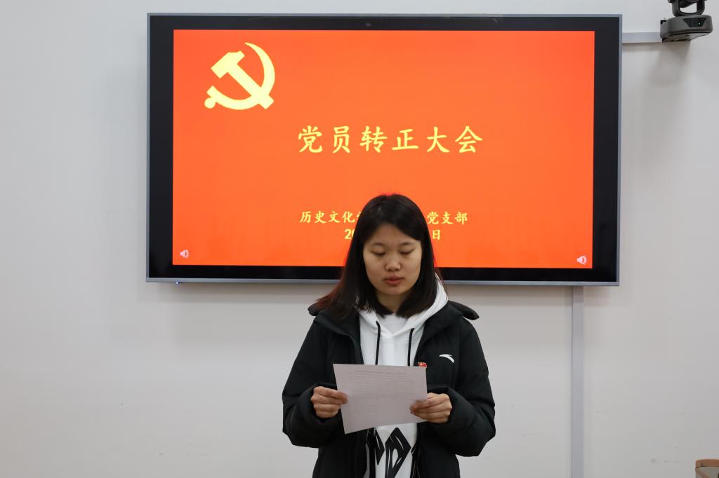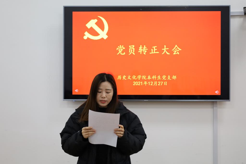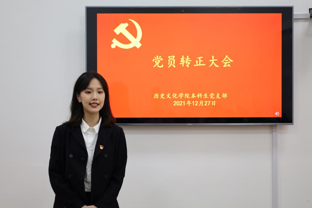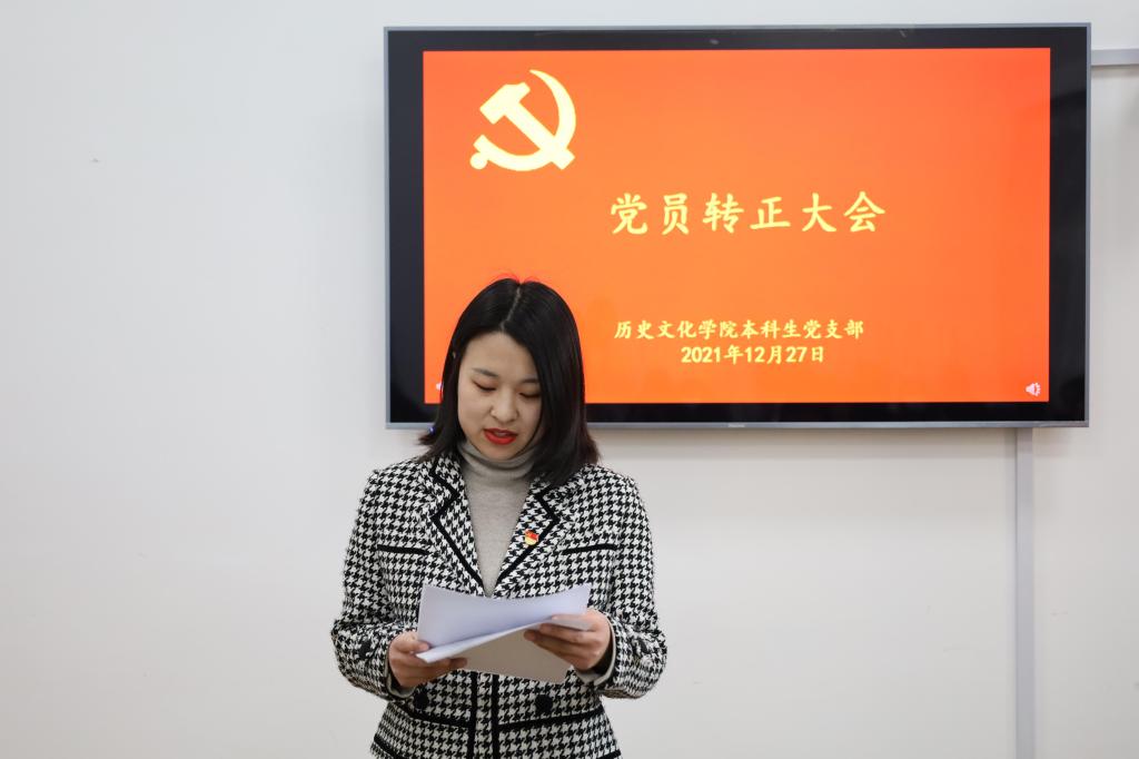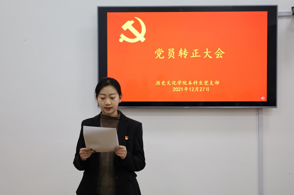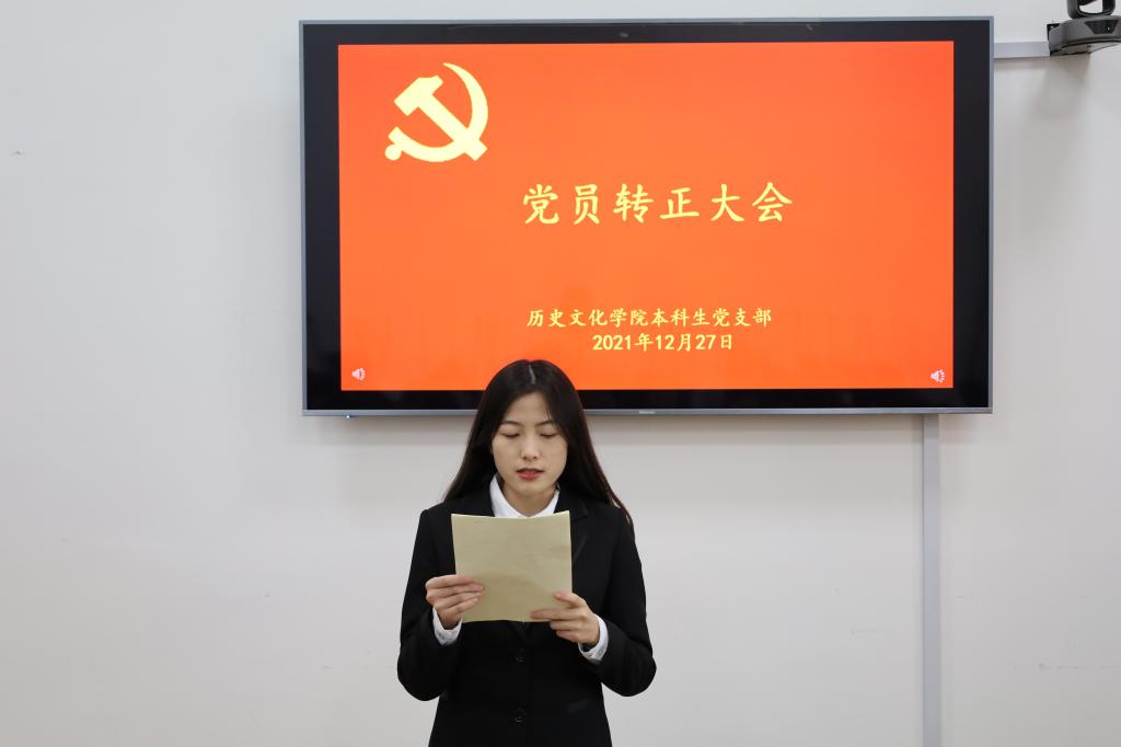 2021年12月27日下午,正妹av 本科生党支部在文史楼505教室召开了党员转正大会,讨论了吴元浩等14位预备党员按期转为中共正式党员的事宜。会议由本科生党支部副书记蔺琦琦主持,本科生党支部全体党员参加。