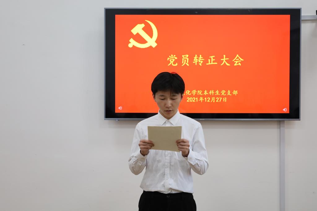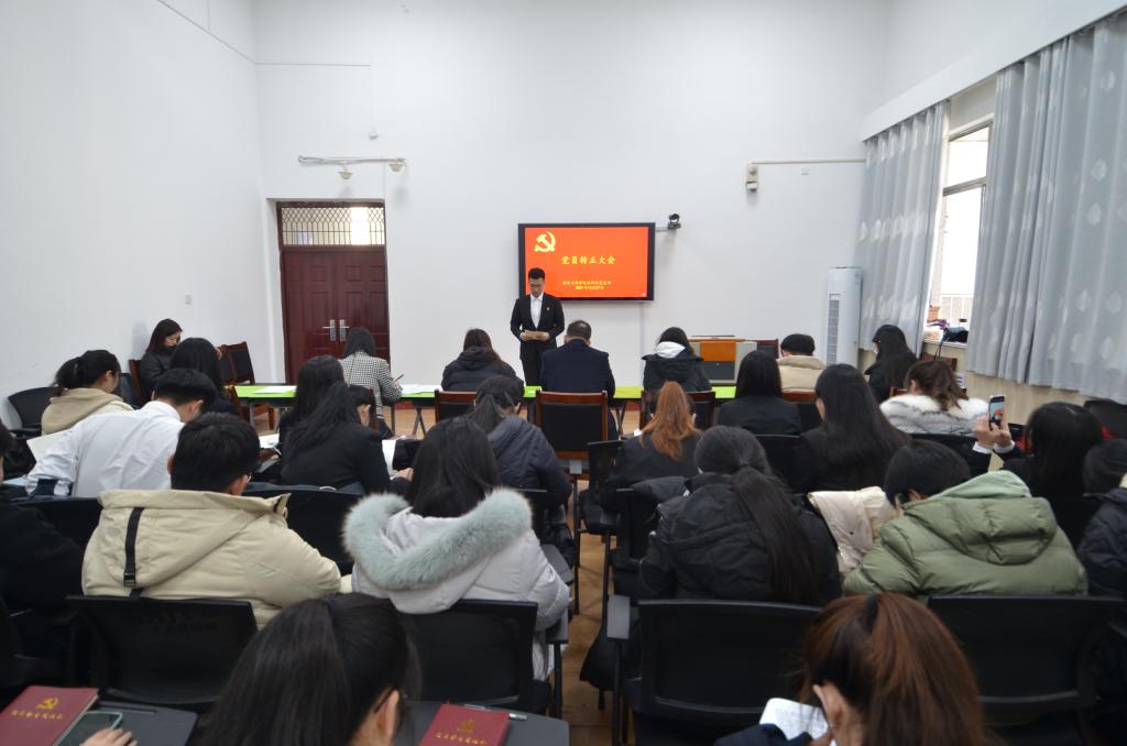 会议开始由本科生党支部副书记蔺琦琦同志介绍了吴元浩等14名同志的基本情况,报告与会人数,介绍会议流程。