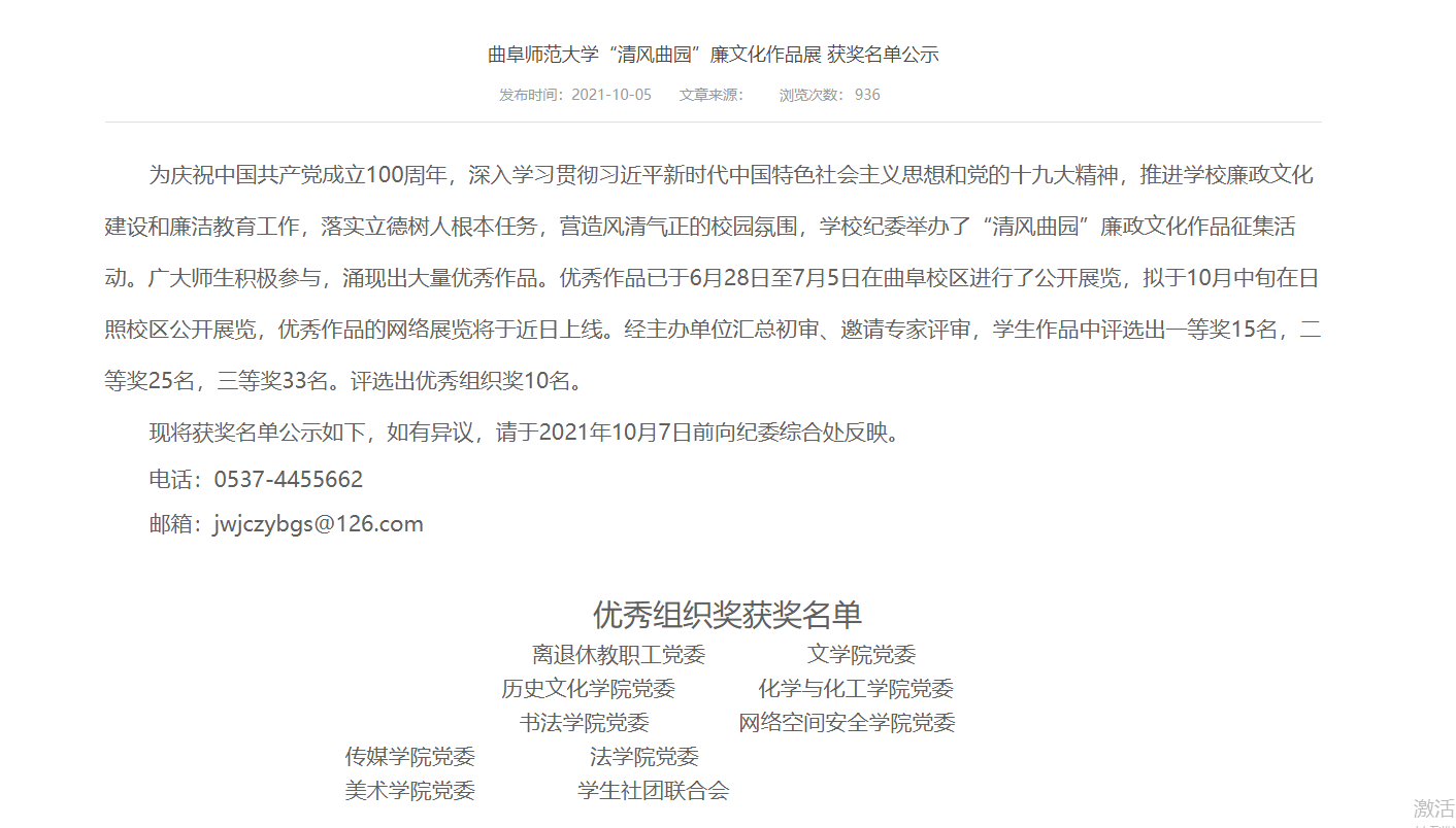 为庆祝中国共产党成立100周年,推动学校廉政教育工作的进行,我校纪委举办了“清风曲园”廉政文化作品征集活动。正妹av 师生积极参与,并获得优异成绩。