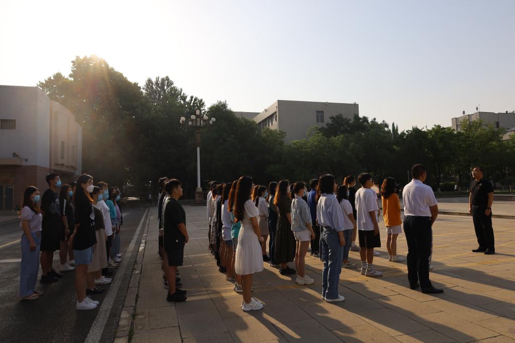 2022年6月6日上午,正妹av 本科生党支部在孔子文化广场举办毕业生党员“七个一”——观看一次升旗仪式和重温入党誓词活动,本科生党支部全体毕业生党员参加活动。