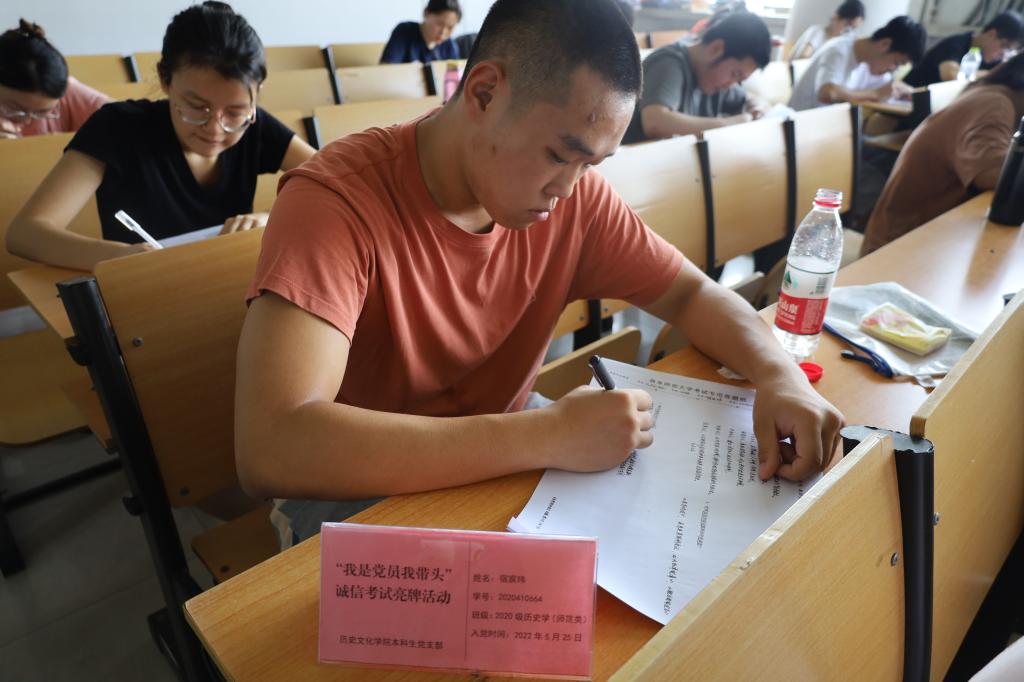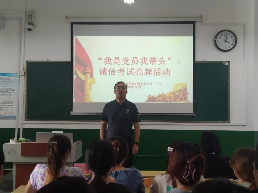 2022年6月22日下午,正妹av 本科生党支部在文史楼309教室召开“我是党员我带头”诚信考试亮牌活动,会议由本科生党支部宣传委员董经主持,本科生党支部全体在校党员参加。