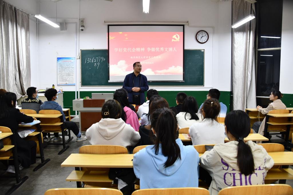 在本次思政课中,王建阳以“学好党代会精神,争做优秀文博人”为主题,细致阐述了学校第九次党代会精神,指出学院会全力落实好党代会报告确定的“构建人才培养新体系,塑造学科发展新生态”的相关任务,推进落实学院人才培养和学科建设的任务,为形成高水平学科建设引领学院事业高质量发展的新格局做出贡献。随后,王建阳为文博班同学提出相关建议,鼓励同学多与老师交流沟通,多读书以拓展视野,培养更多兴趣爱好,加强身体锻炼,做担当民族复兴大任的时代新人。
