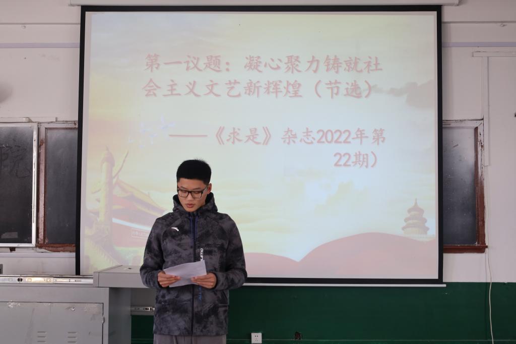 活动伊始,全体党员进行了“第一议题”的学习,本次学习内容为《求是》杂志2022年第22期文章《凝心聚力铸就社会主义文艺新辉煌》,由张凯同志领学。
