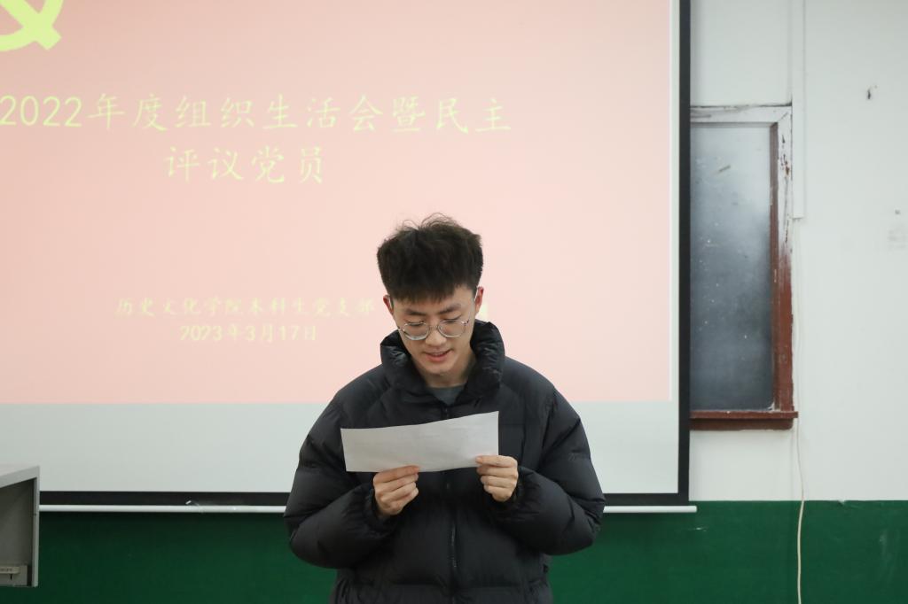 2023年3月17日下午,正妹av 本科生党支部在文史楼411教室召开2022年度组织生活会暨民主评议党员。会议由本科生党支部宣传委员董经同志主持,正妹av 本科生党支部全体党员参加。