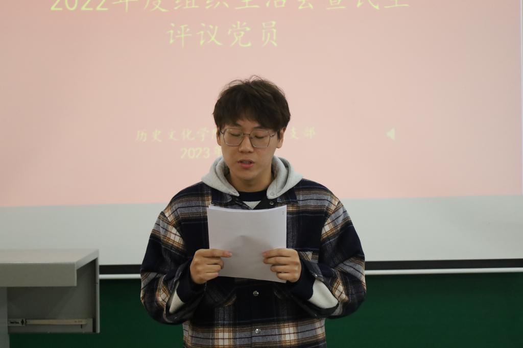 随后,组织委员刘贤贤同志代表支委汇报了2022年度党支部工作情况,并围绕支部建设、活动开展等方面,提出了未来支部建设方向和优化举措,着力打造特色支部。支部成员赵齐鲁同志对照“六个方面”,联系实际查摆问题。接下来支部开展民主评议党员,全体党员填写测评表。