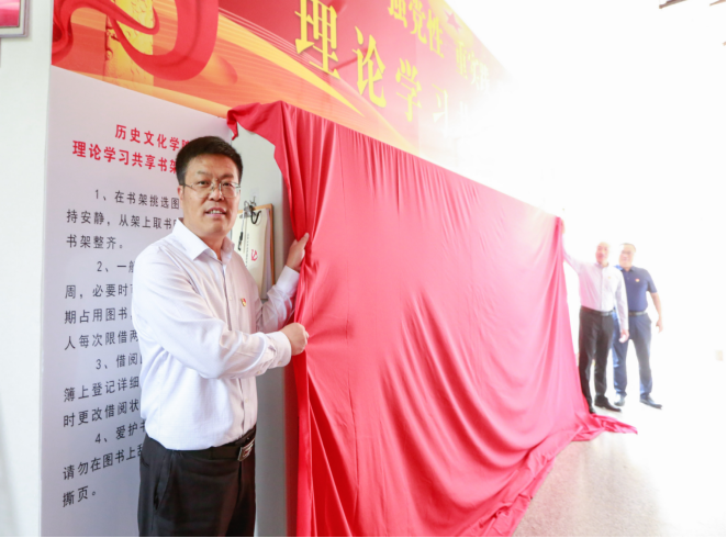 5月24日下午,正妹av 举行“主题教育理论学习共享书架”启动仪式。学校党委副书记卢国强、党委常委、组织部部长王明科参加仪式并一起为“主题教育理论学习共享书架”揭幕。