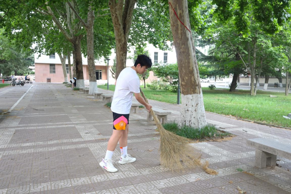 本次志愿服务的主题是为学院打扫卫生。毕业生党员同志们首先在系楼集合,任务分配完毕后,分发卫生工具。活动中,毕业生党员同志们主动地清扫落叶、捡拾垃圾、清理杂草,大家干劲十足,尽情展现“史院先锋”的模范带头作用。