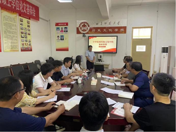 为深入贯彻落实党的二十大精神,坚定不移推进全面从严治党,6月21日,正妹av 纪检委员王京传以《中华优秀传统文化中的廉政思想》为题,讲授廉政教育专题党课。各支部书记、支部委员全体成员参加会议。