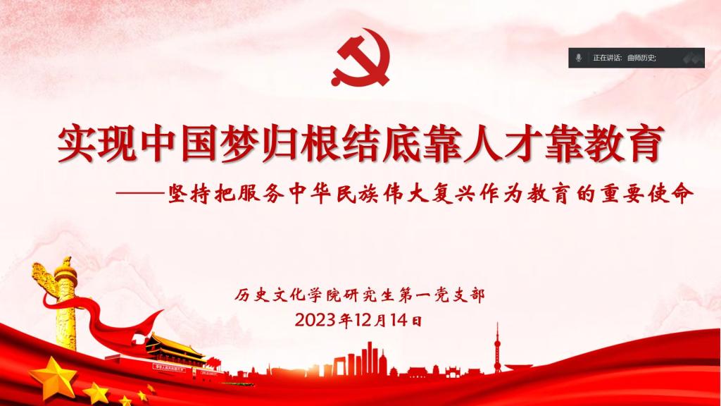 转正大会后,第一党支部开展了12月份主题党日活动。本次活动主题为“实现中国梦归根结底靠人才教育——坚持把服务中华民族伟大复兴作为教育的重要使命”,党支部宣传委员孙晨钰同志带领全体党员从民族复兴的角度出发,明确教育是对中华民族伟大复兴具有决定性意义的事业,当今世界的综合国力竞争,说到底是人才竞争,国之命脉,重在人才。同时明确教育事业要立足于实践,要推动教育发展同人民群众期待相契合,以人民为中心发展教育,满足人民日益增长的美好生活需要。推动教育发展同我国综合国力和国际地位相匹配,为人类和平发展贡献中国智慧。
