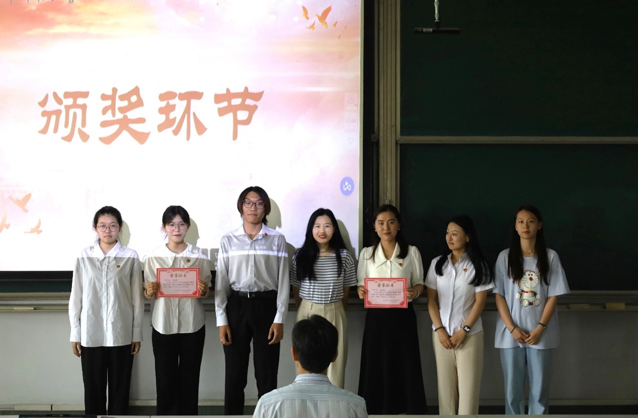 比赛过程十分激烈,参赛者们充分展现自我,赛出了风采,赛出了水平。经过角逐,最终评选出一、二、三等奖。研究生第一党支部获一等奖、研究生第二党支部和本科生第三党支部获二等奖、本科生第一党支部和本科生第二党支部获三等奖,分别由孙峰同志、刘贤贤同志、董经同志向各党支部颁发证书并合影留念,此次活动圆满结束。