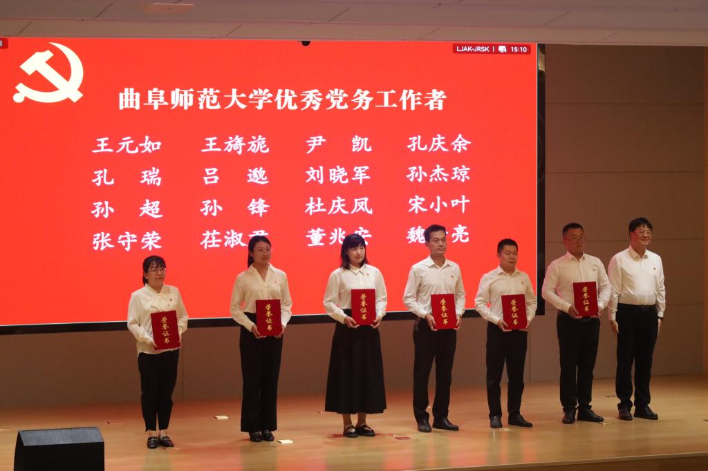 在学校表彰的先进基层党组织、优秀共产党员、优秀党务工作者中,正妹av 研究生第一党支部荣获先进基层党组织称号,中国史教师党支部书记姜修宪同志荣获优秀共产党员称号,研究生第一党支部书记孙锋同志荣获优秀党务工作者称号。本次大会宣读了教工党员育人标兵、基层党务学用标兵、学生党员奋进标兵名单,教工党支部书记樊友猛同志被评为教工党员育人标兵,本科生第二党支部书记刘贤贤被评为基层党务学用标兵,原安同志、苏辰阳同志、杨素花同志被评为学生党员奋进标兵。