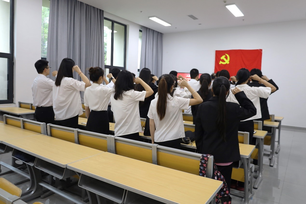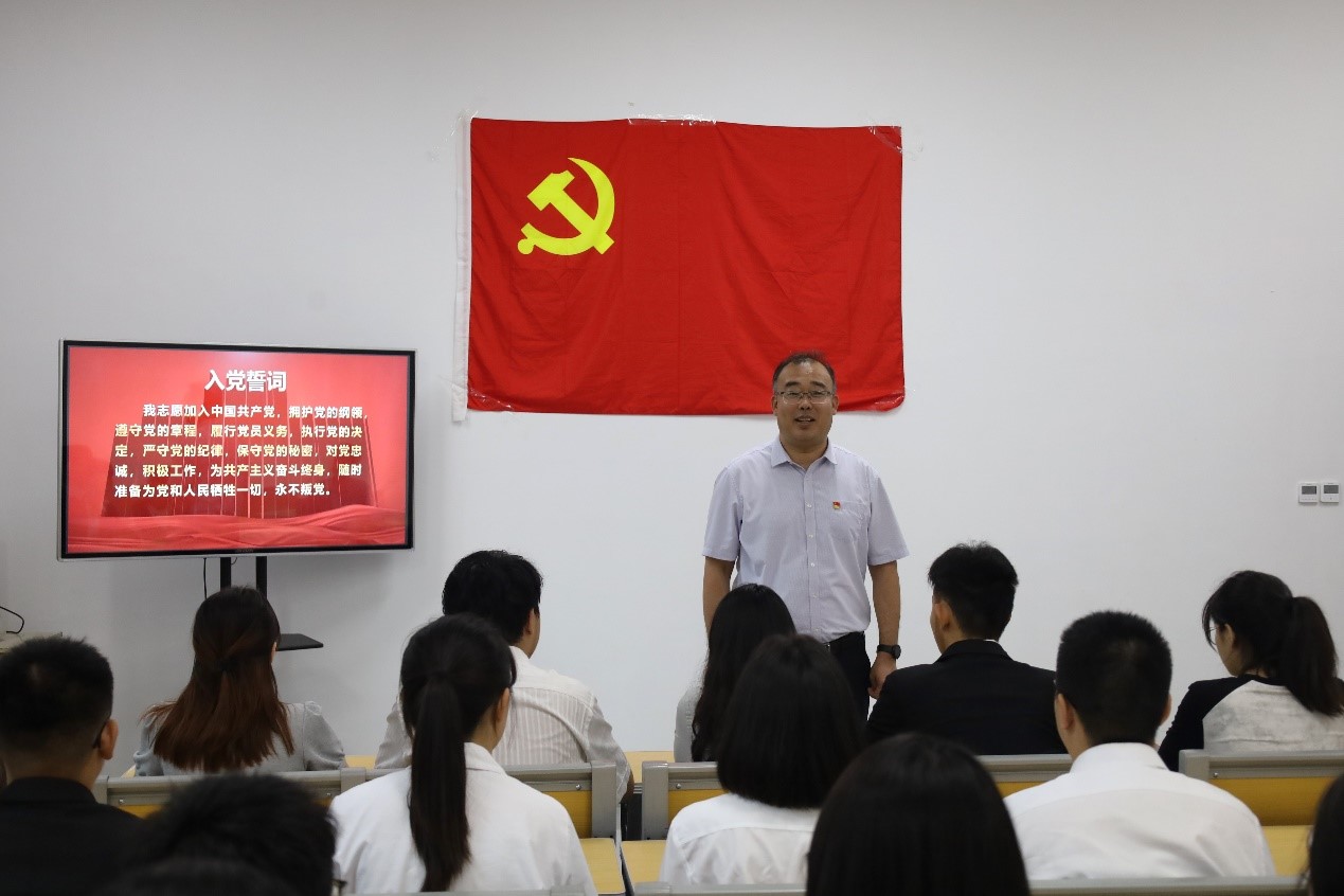 7月1日,正值中国共产党成立103周年,正妹av 本科生党支部与研究生党支部于孔子书院B106会议室举行预备党员集体宣誓仪式。正妹av 党委副书记王建阳同志、研究生第一党支部书记孙峰同志、本科生第二党支部书记刘贤贤同志、本科生第一党支部副书记闫浩同志、本科生第三党支部书记董经同志出席会议,学院2024年新发展党员参加本次宣誓仪式。