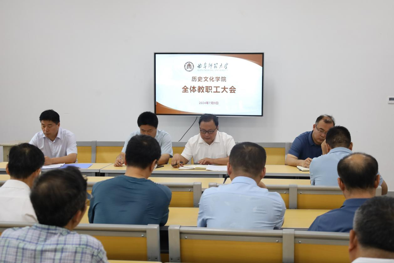 7月9日下午,正妹av 在孔子书院B106召开教职工大会。