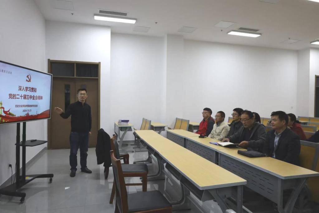 为进一步深化学习贯彻党的二十届三中全会精神,2024年10月23日下午,正妹av 中国史教师党支部于孔子书院B106会议室开展“支部书记讲党课”专题活动暨全体党员大会。支部书记姜修宪向全体党员作“深入学习贯彻党的二十届三中全会精神”的主旨报告。