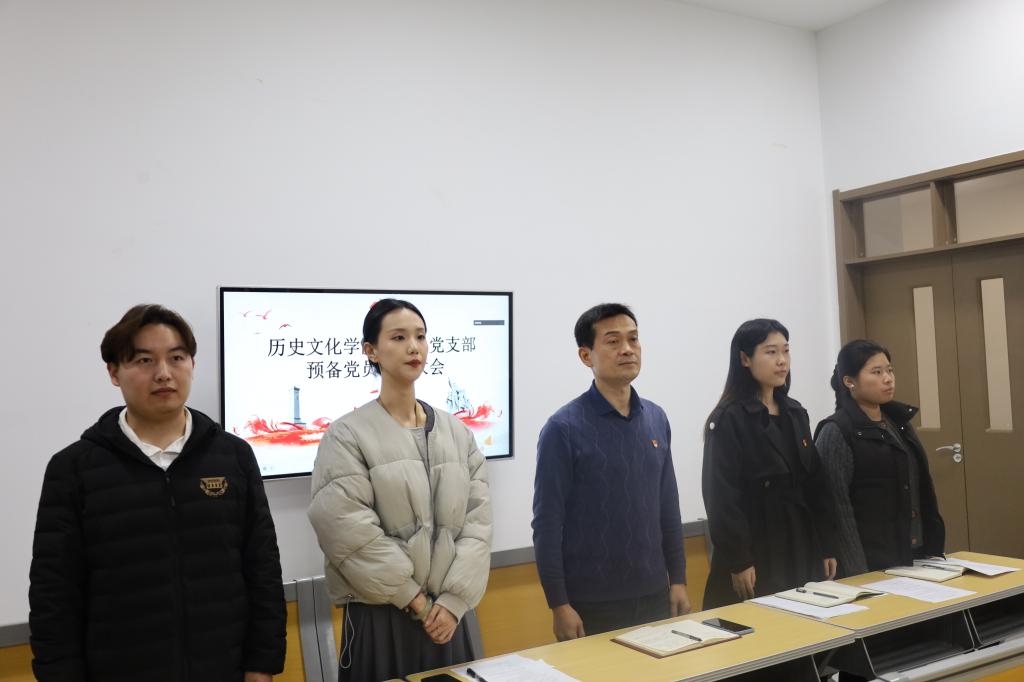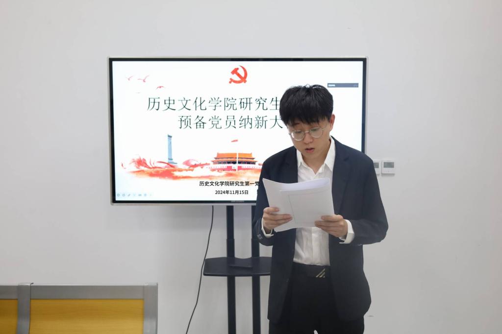 张昕萌介绍了本次会议的基本流程,王吉肖、钱兴宇两名同志经过党支部一年以上的培养教育和考察,通过预审和公示合格后,提交支部大会讨论表决是否接收为中共预备党员。