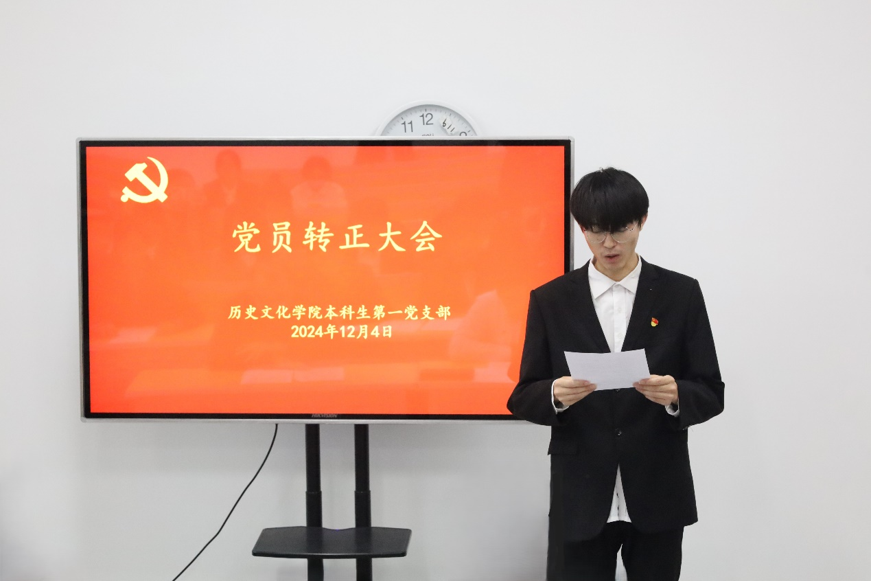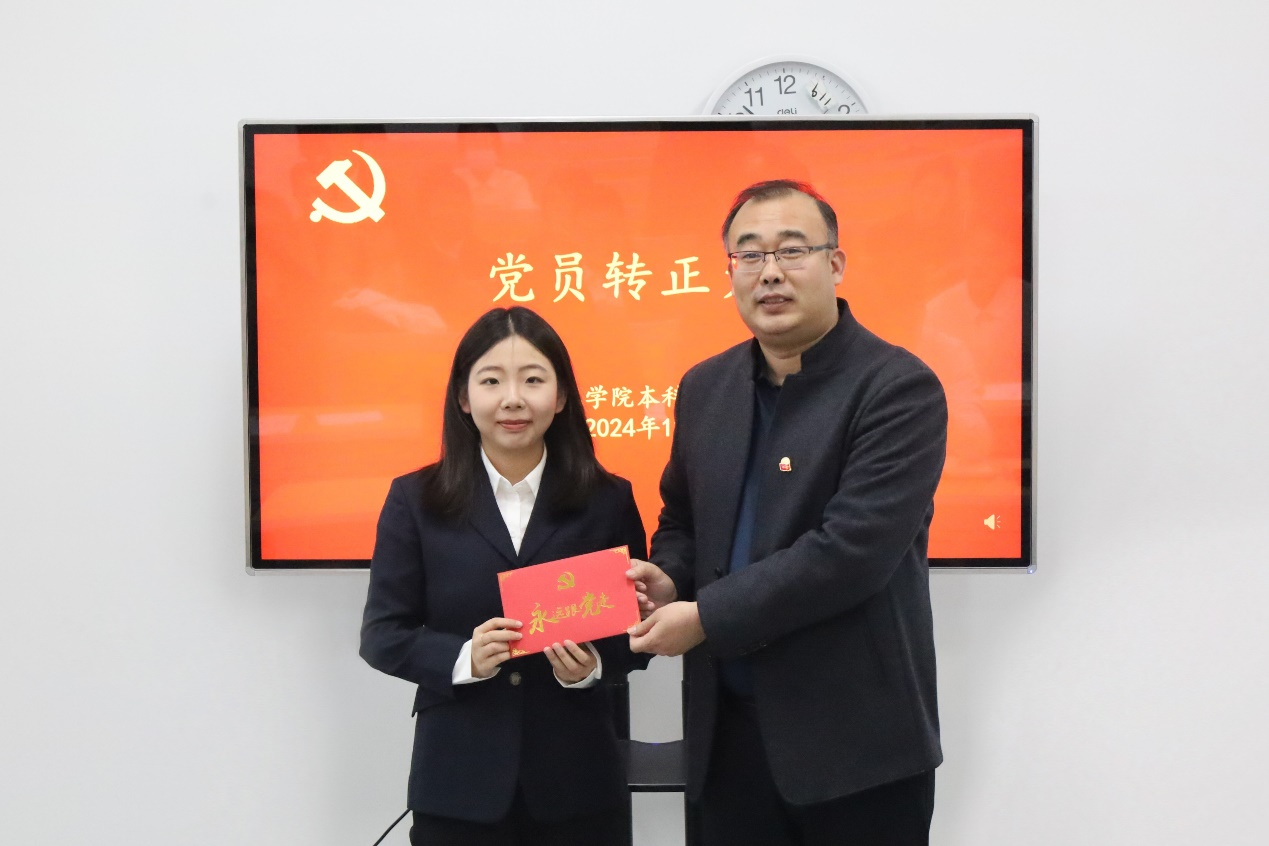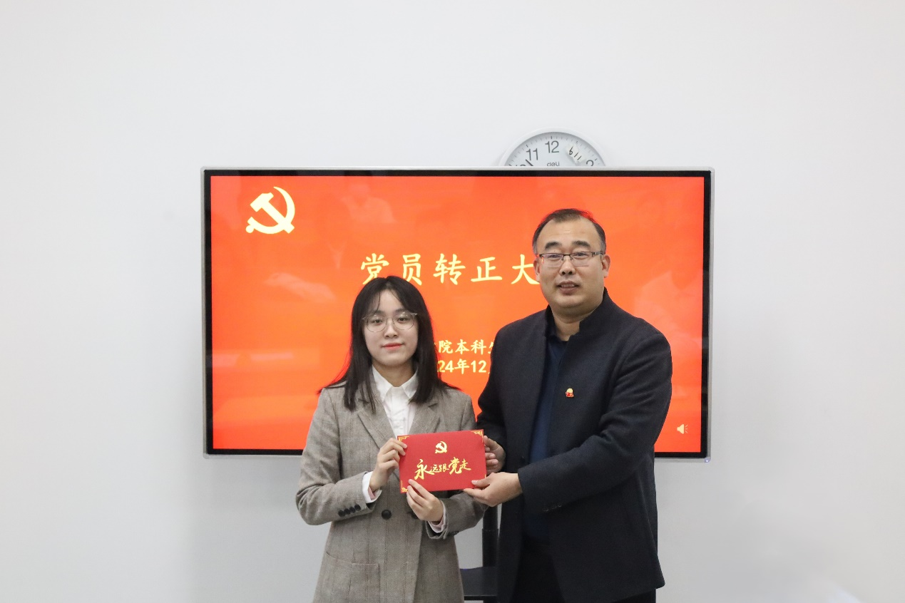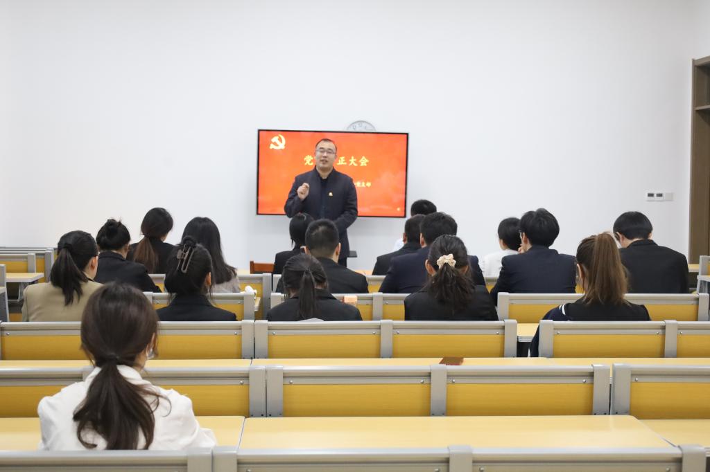 2024年12月4日,正妹av 本科生第一党支部于孔子书院B104教室召开党员转正大会,讨论李映慧等5名同志转为正式党员的事宜。大会由支部书记王建阳主持,支部全体党员参加。