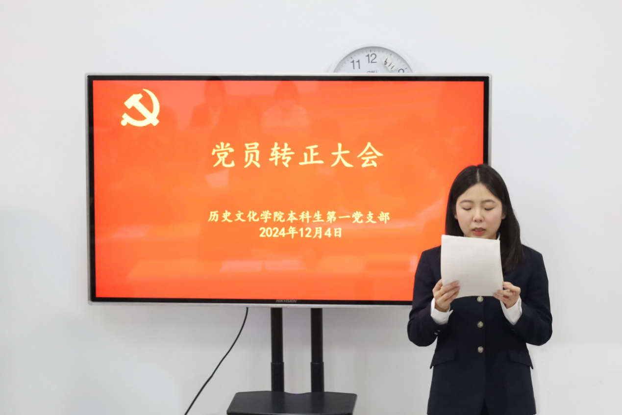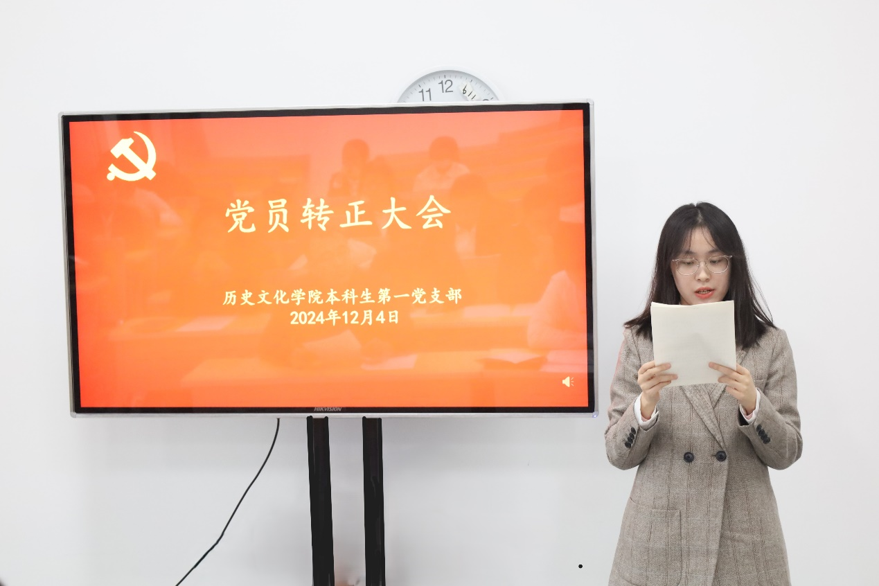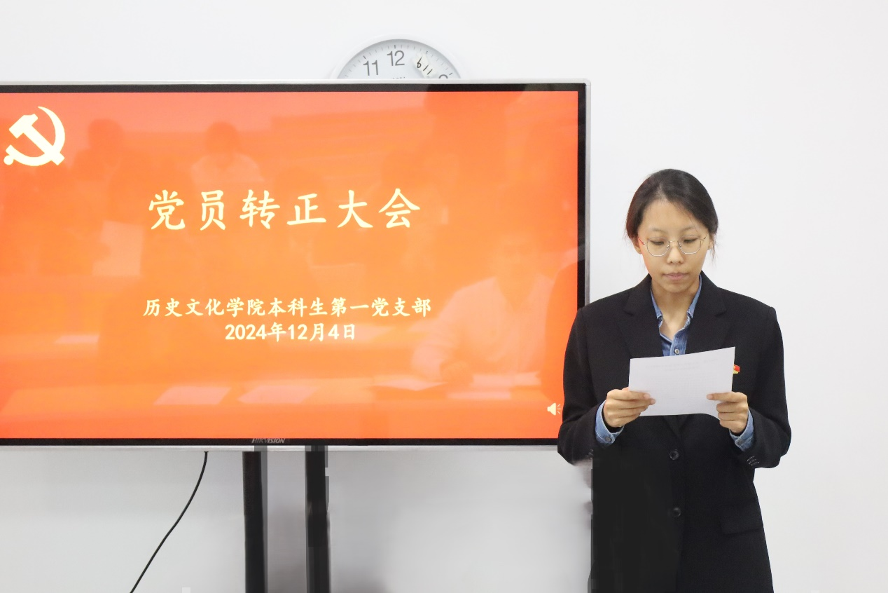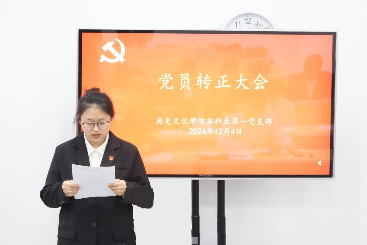 2024年12月4日,正妹av 本科生第一党支部于孔子书院B104教室召开党员转正大会,讨论李映慧等5名同志转为正式党员的事宜。大会由支部书记王建阳主持,支部全体党员参加。