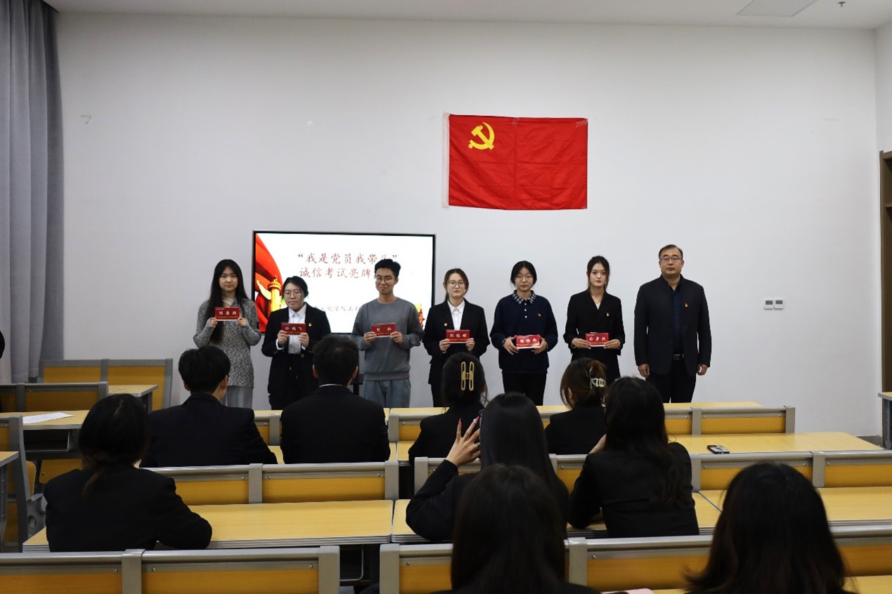 会议之初,董经同志表明诚信考试亮牌活动是正妹av 优质传统活动,这不仅是对党员的诚信教育,更是对党员的激励和鞭策。随后,王建阳同志向各位同学颁发诚信考试姓名牌,他期望同志们诚信考试,诚实做人,维护知识尊严,遵守考场纪律,并带动身边同学们认真复习备考,做好党员先锋模范作用!