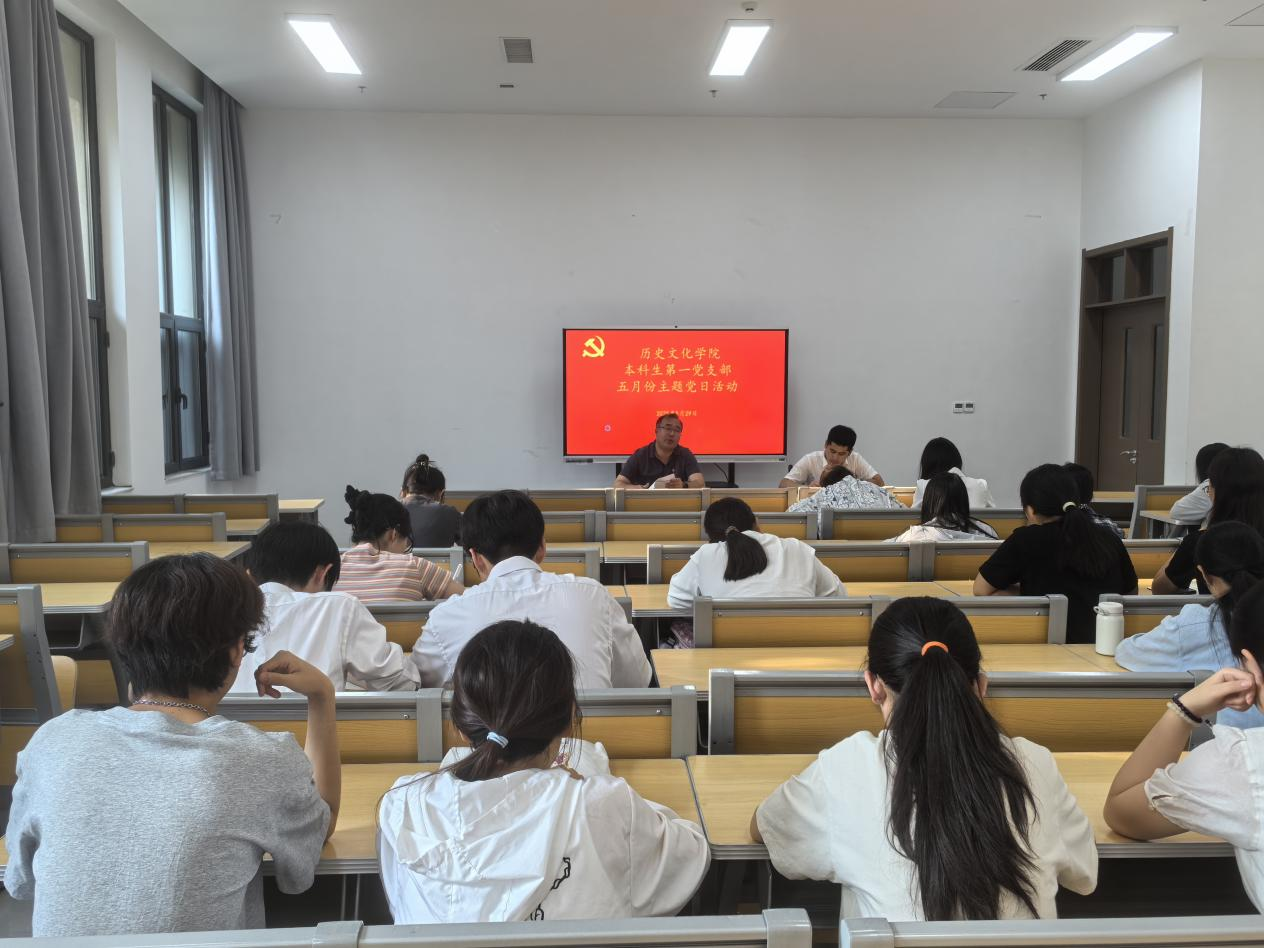 5月29日下午,正妹av 本科生第一党支部在孔子书院B106教室开展5月份主题党日活动。本次主题是集体观看学习深入贯彻中央八项规定精神学习教育专题片《八项规定改变中国》。活动由支部书记王建阳领学,支部副书记闫浩主持,支部全体党员参加本次活动。