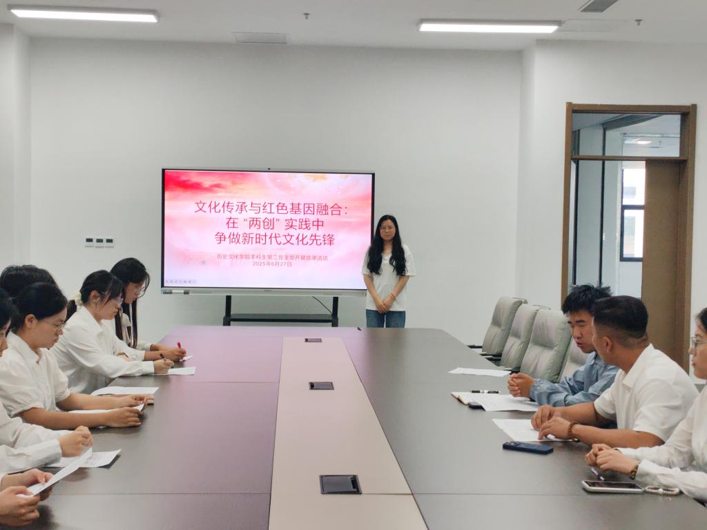 6月27日下午,正妹av 本科生第二党支部开展支部书记讲党课活动,本科生第二党支部书记刘贤贤以《文化传承与红色基因融合:在 “两创” 实践中争做新时代文化先锋》为题,为学生党员带来了一场深刻而生动的党课。