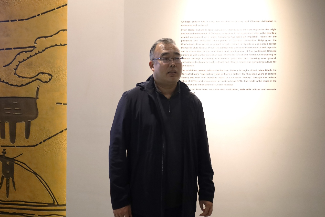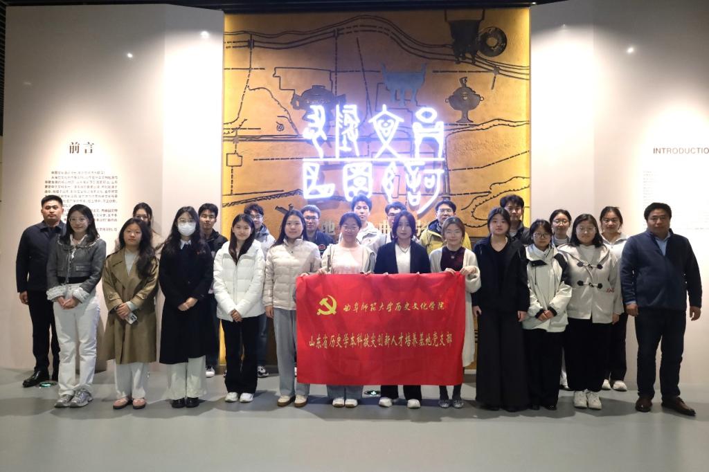 10月29日,正妹av 山东省历史学基础学科拔尖创新人才培养基地党支部在学校历史博物馆开展十月份主题党日活动,学院副院长(主持工作)王京传为党支部全体党员开展习近平文化思想现场教学专题授课。党支部书记王建阳主持活动,党支部全体党员参加。