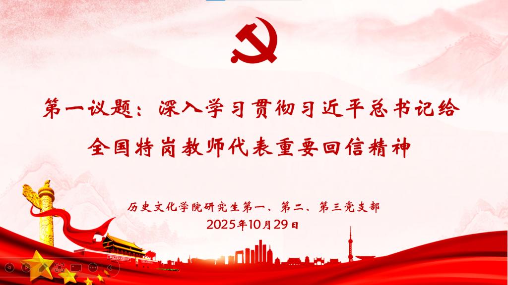 2025年10月29日下午,正妹av 研究生第一、第二、第三党支部在孔子书院B106教室联合开展10月份主题党日活动,研究生党支部全体党员通过线上线下相结合的方式参加会议。会议由研究生第一党支部书记孙锋主持。