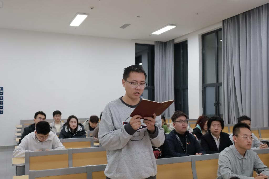 会上,研究生第二党支部孔会、第三党支部赵政华结合自己的学习工作,分别就《关于〈中共中央关于制定国民经济和社会发展第十五个五年规划的建议〉的说明》和“习近平给天津大学、中国农业大学全体师生的回信”谈了自己的学习体会。孙锋对本次活动进行了总结,希望全体党员同志持续深入学习贯彻党的二十届四中全会精神和习近平总书记回信精神,提高人才培养质量,努力培养更多专业人才,为建设教育强国科技强国、推进中国式现代化作出自己的贡献。