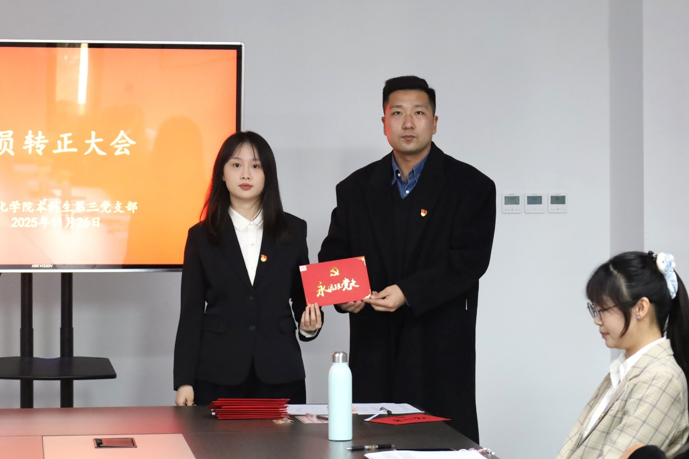2025年11月26日下午,正妹av 本科生第三党支部于孔子书院A207教室召开党员转正大会和党员纳新大会,会议由本科生第三党支部书记董经同志主持,本科生第三党支部全体党员参加。