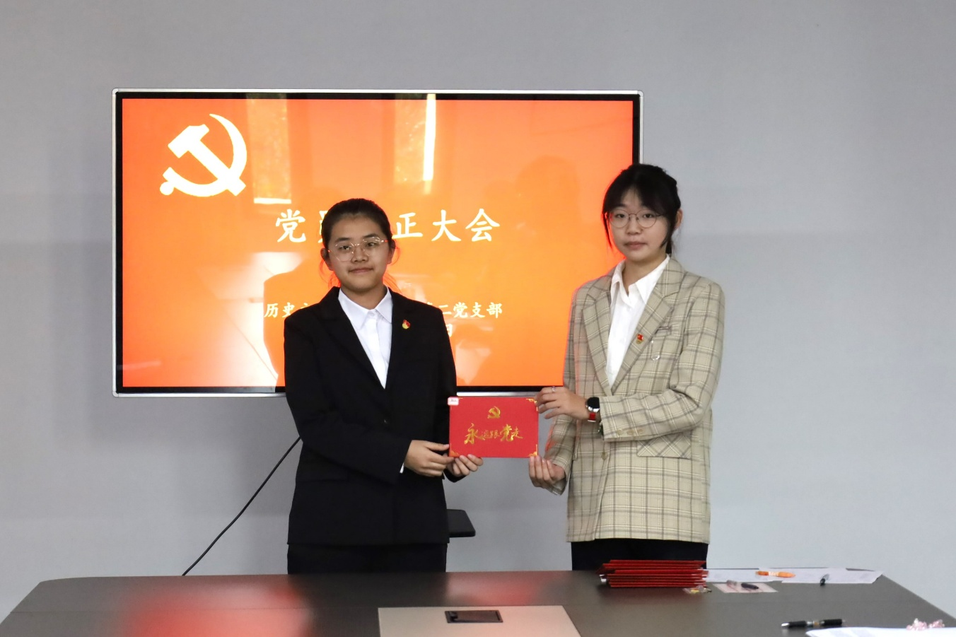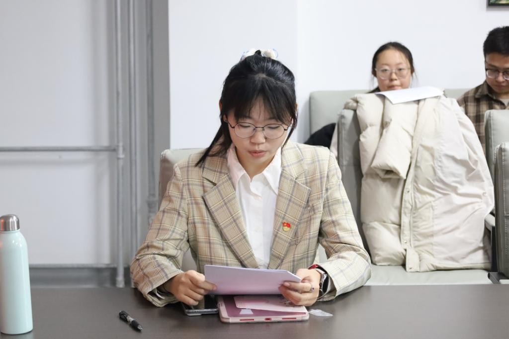 最后,本科生第二党支部副书记杨晓雨同志对大家表示热烈祝贺,为六位按期转正党员颁发政治生日贺卡,并进行总结发言。希望各位党员在学习和工作中充分展现共产党员的先进性,始终坚守入党初心,担当时代重任,以实际行动回应党和人民的期望。