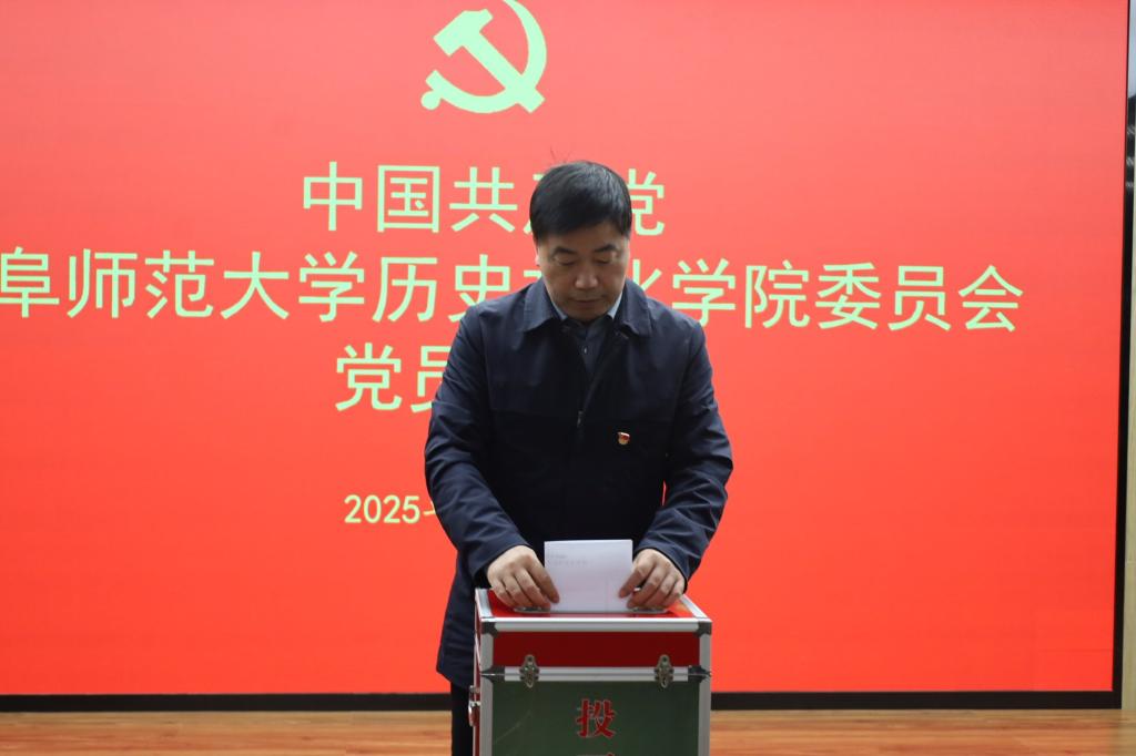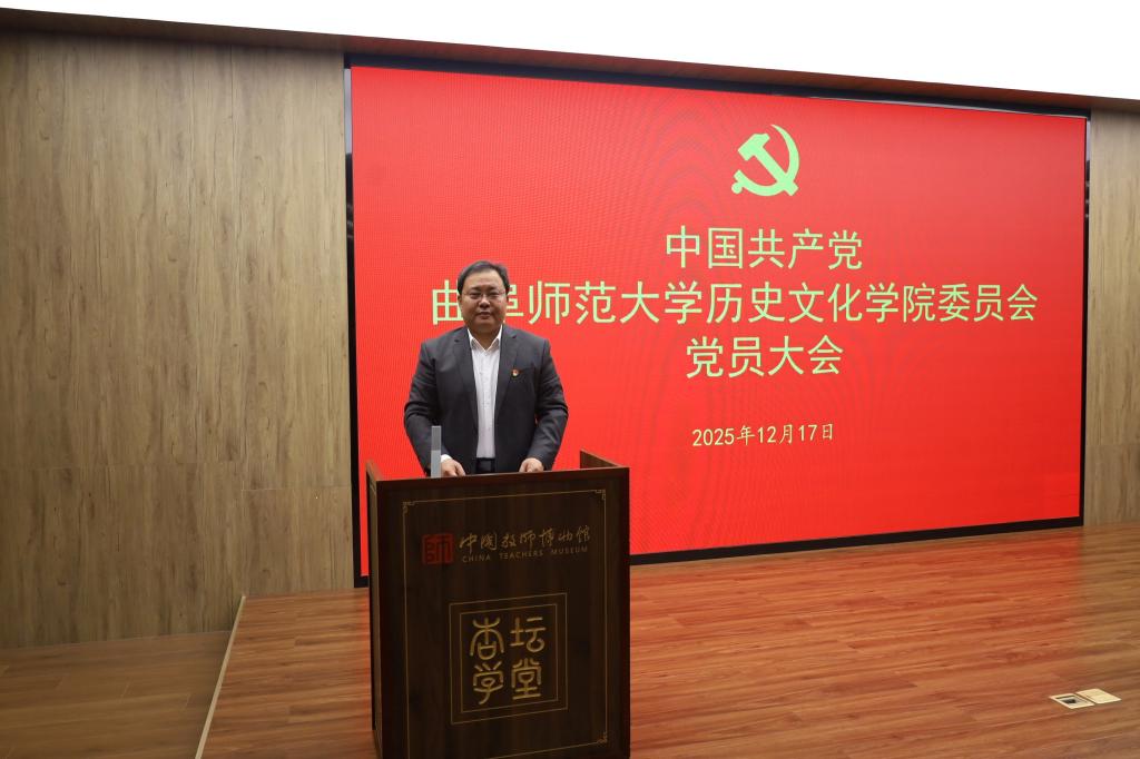 2025年12月17日下午,学院党委在教师博物馆三楼会议室召开了党委换届选举大会。学院领导姜开勇、王京传、王建阳、吕厚轩以及中国史教师党支部、教工党支部、研究生第一党支部、研究生第二党支部、研究生第三党支部、山东省历史学基础学科拔尖创新人才培养基地党支部、本科生第二党支部和本科生第三党支部共95人出席了大会。会议由副院长王京传(主持工作)主持。