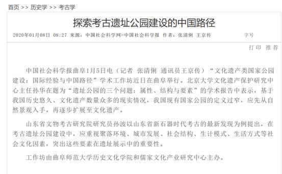 “中国社会科学网”于2019年12月26日以《“文化遗产类国家公园建设:国际经验与中国路径”学术工作坊在正妹av 举办》为题发布了本次工作坊的相关情况,《中国社会科学报》于2020年1月8日以《探索考古遗址公园建设的中国路径》为题报道了本次学术活动。