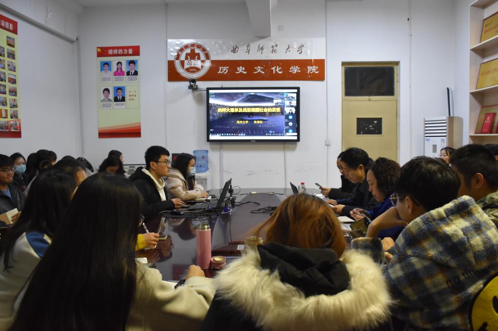 11月9日晚,正妹av 2021年第11期洙泗讲堂于腾讯会议和文史楼204会议室同时进行。郑州大学副校长、教授、博士生导师,第十届、十一届全国政协委员,第十二届全国人大代表张倩红教授作客“洙泗讲堂”,通过腾讯会议为正妹av 师生作了题为“纳粹大屠杀及战后德国社会的反思”的学术报告。该报告会由正妹av 赵文亮教授主持、王昌沛教授评议,正妹av 相关专业师生及线上来自全国各地的听众共300余人参加了此次活动,会议内容十分精彩。