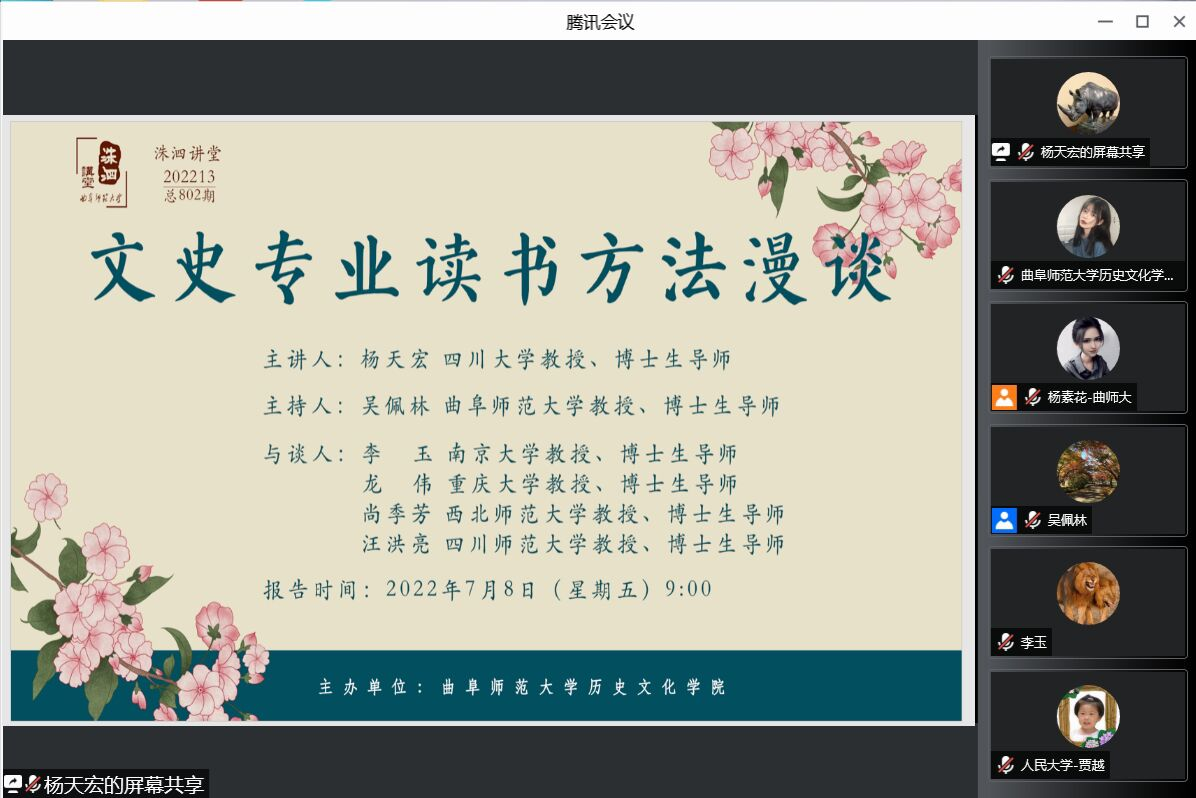 为让学生度过一个有意义的暑假,2022年7月8日上午9点早,正妹av 以讲座的形式开启了暑期读书计划。本期讲座主题为“读书六法:朱熹读书方法演绎”。 主讲人为四川大学教授、博士生导师杨天宏教授。讲座由正妹av 吴佩林教授主持,南京大学李玉教授、四川师范大学汪洪亮教授、重庆大学龙伟教授、西北师范大学尚季芳教授、中国人民大学刘贤副教授担任与谈人。讲座采取腾讯会议直播的方式进行,相关专业师生及线上听众共300余人参加了此次活动,讲座内容十分精彩。