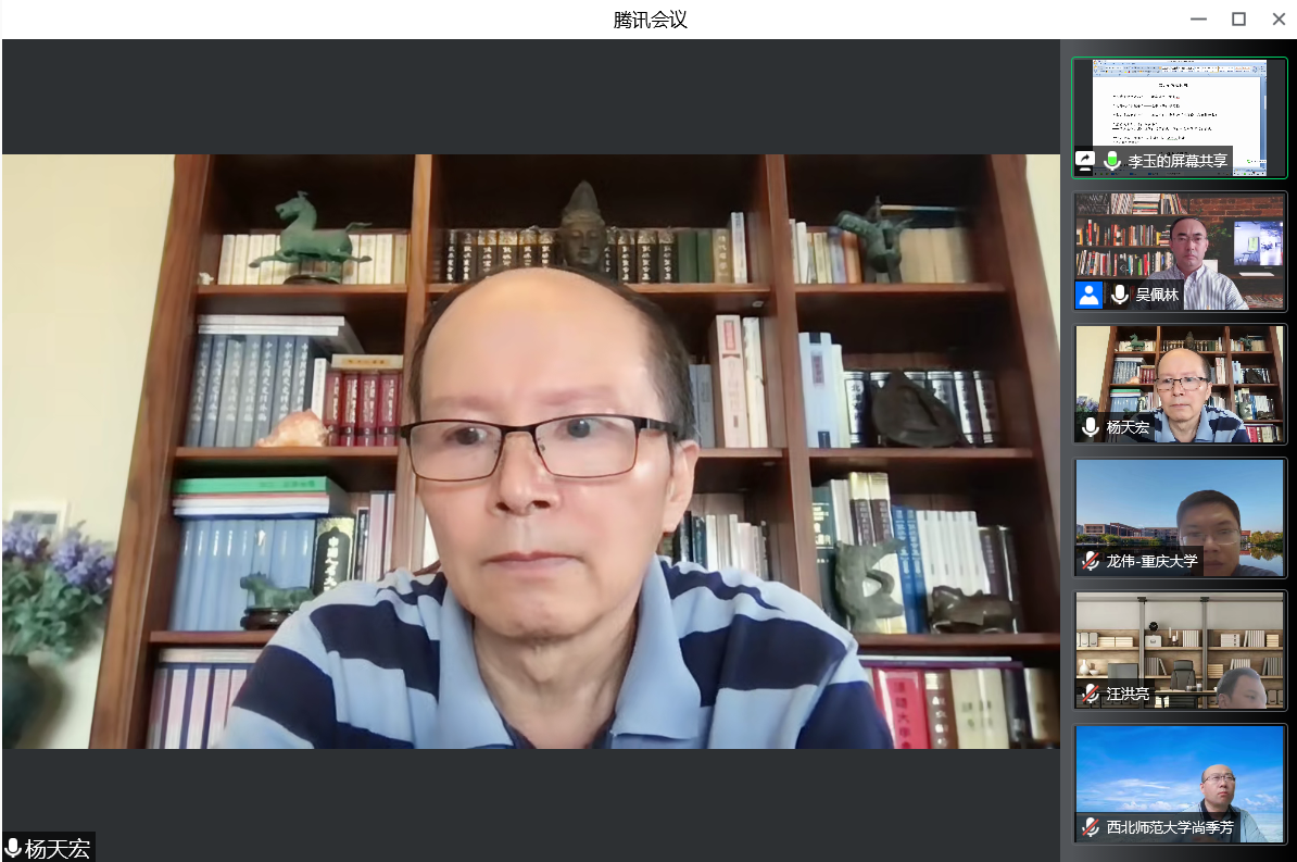 讲座最后,李玉、汪洪亮、龙伟、尚季芳、刘贤五位与谈人分享了自己对读书方法的认识。在提问互动环节中,杨教授就“如何有效率地掌握史学的资料以及书籍中的大概内容,以便于在研究问题和写论文的时候可以运用”“史学的书评机制的建议”等问题一一解答。最后,吴佩林院长再次对杨天宏教授的精彩讲座和五位评议人的分享表示感谢,并要求学院学生利用暑假至少精读一本专著或一种史料。各位老师同学也在腾讯会议中进行了合影留念。本次讲座在正妹av 师生之间反响热烈,同时也得到了校外学者与同学的一致好评。