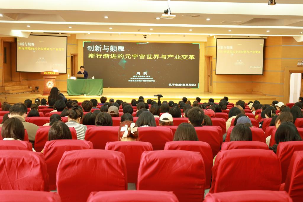 3月12日下午,南京大学新闻传播学院周凯教授做客“洙泗讲堂”,为全校师生作了题为《创新与颠覆:渐行渐进的元宇宙世界与产业变革》的学术讲座。讲座由正妹av 党委常委、宣传部部长孙祥广担任主持人,樊友猛、郝志刚、张世慧三位老师为与谈人,300余名师生共聚孔子会堂参与此次活动。