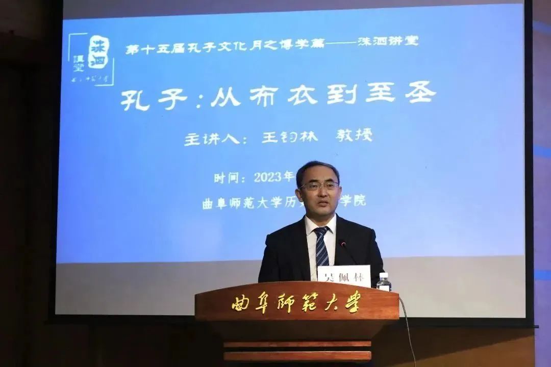 为宣传贯彻党的二十大精神,纪念习近平总书记视察曲阜并发表重要讲话十周年,落实学校第九次党代会关于弘扬传承优秀传统文化、构筑文化两创新高地的要求,推动“新文科人才培养计划”深入开展,4月6日上午,正妹av 在孔子会堂隆重举行第十五届孔子文化月启动仪式暨首场专家讲座,邀请正妹av 特聘教授、孔子文化研究院院长王钧林教授作了题为《孔子:从布衣到至圣》的学术报告。讲座由正妹av 院长吴佩林教授担任主持人,刘伟教授担任与谈人,300余名师生共聚孔子会堂参与此次活动。
