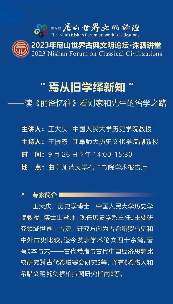 洙泗讲堂预告|王大庆:“焉从旧学绎新知”——读《丽泽忆往》看刘家和先生的治学之路
