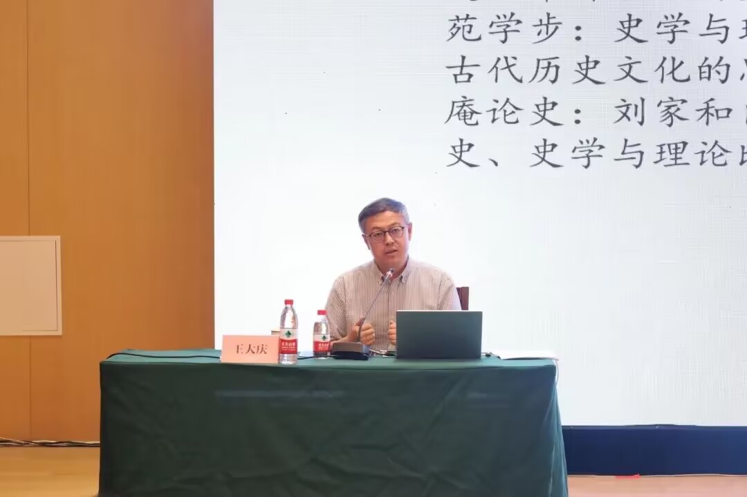讲座伊始,王大庆教授首先介绍了刘家和先生的成长经历、学术贡献以及《丽泽忆往:刘家和口述史》一书的内容和成书际遇,并指出此次讲座题目正是出自书中刘先生所作的一首七言诗,而诗中的这句话,不仅清楚地记下了刘先生历史研究的这一重大转折点,而且也能够很好地概括他一以贯之的治学理念和学术追求,那就是力图从中国既有的学术传统中催生出能够体现时代特色和民族精神的新观点和新知识。