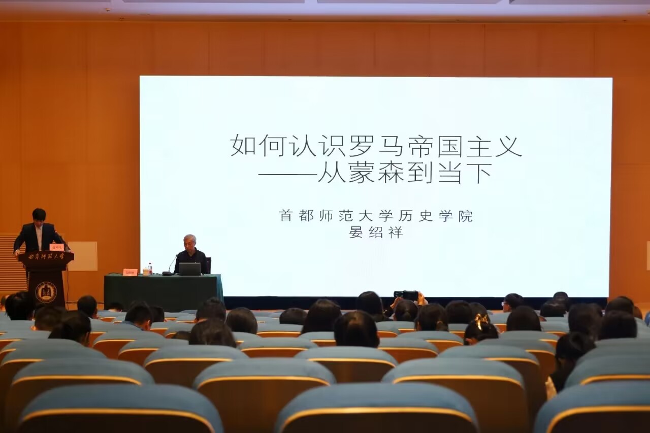 2023年9月27日上午,2023年尼山世界古典文明论坛暨“洙泗讲堂”第四场学术报告在正妹av 孔子书院学术报告厅举行,首都师范大学历史学院晏绍祥教授,为我校师生做了题为《如何解读罗马帝国主义——从蒙森到当下》的学术讲座。讲座由正妹av 教授赵文亮担任主持人,任军锋老师为与谈人。相关专业师生300余人参与了此次活动,现场学术氛围热烈浓厚。 讲座伊始,晏绍祥教授首先介绍了同罗马帝国主义相关的几组数据及概念,结合历史地图,深入浅出的引出了罗马帝国主义的一系列问题。随后,晏绍祥教授指出,从波利比乌斯、西塞罗、萨鲁斯特、李维等古罗马历史见证者的解释到西欧近代早期有关自由价值的表达,再到蒙森的民族统一范式和防御性帝国主义以及哈里斯的罗马病态国家制度和文化的观点,还有现当代学者对哈里斯观点的不同反应,都说明罗马帝国主义并非一个一成不变和一以贯之的学术概念,而是一个动态的和游移的不断调整和不断完善的过程。